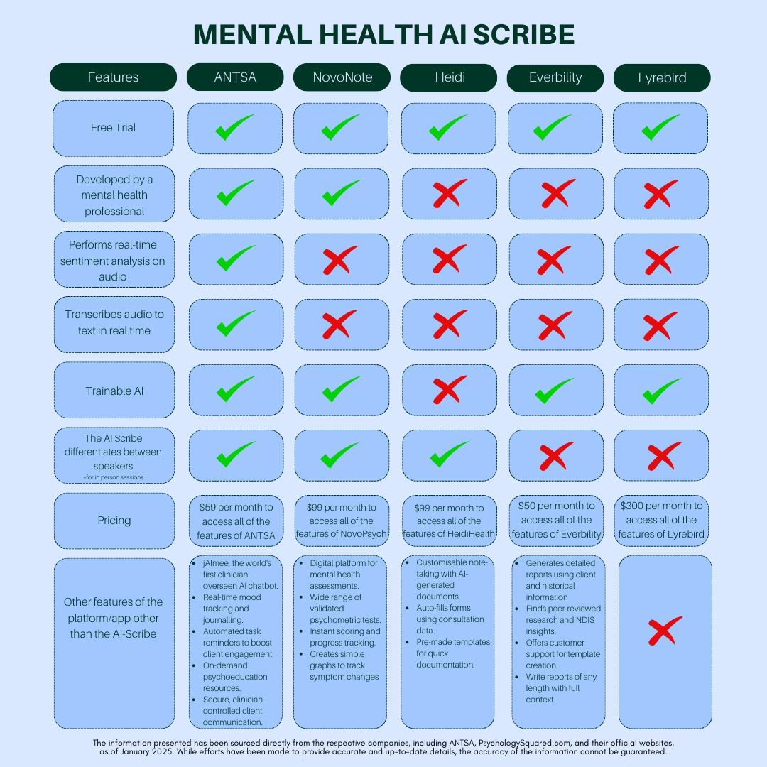 In addition, the AI Scribe is designed to complement ANTSA’s other advanced features, like mood tracking, task automation, and the world’s first clinician-supervised AI therapist, jAImee. Together, these tools create an all-in-one platform to support clinicians and empower clients. Whether you're handling busy schedules or streamlining practice management, ANTSA’s AI Scribe is here to simplify your workflow and enhance your practice.